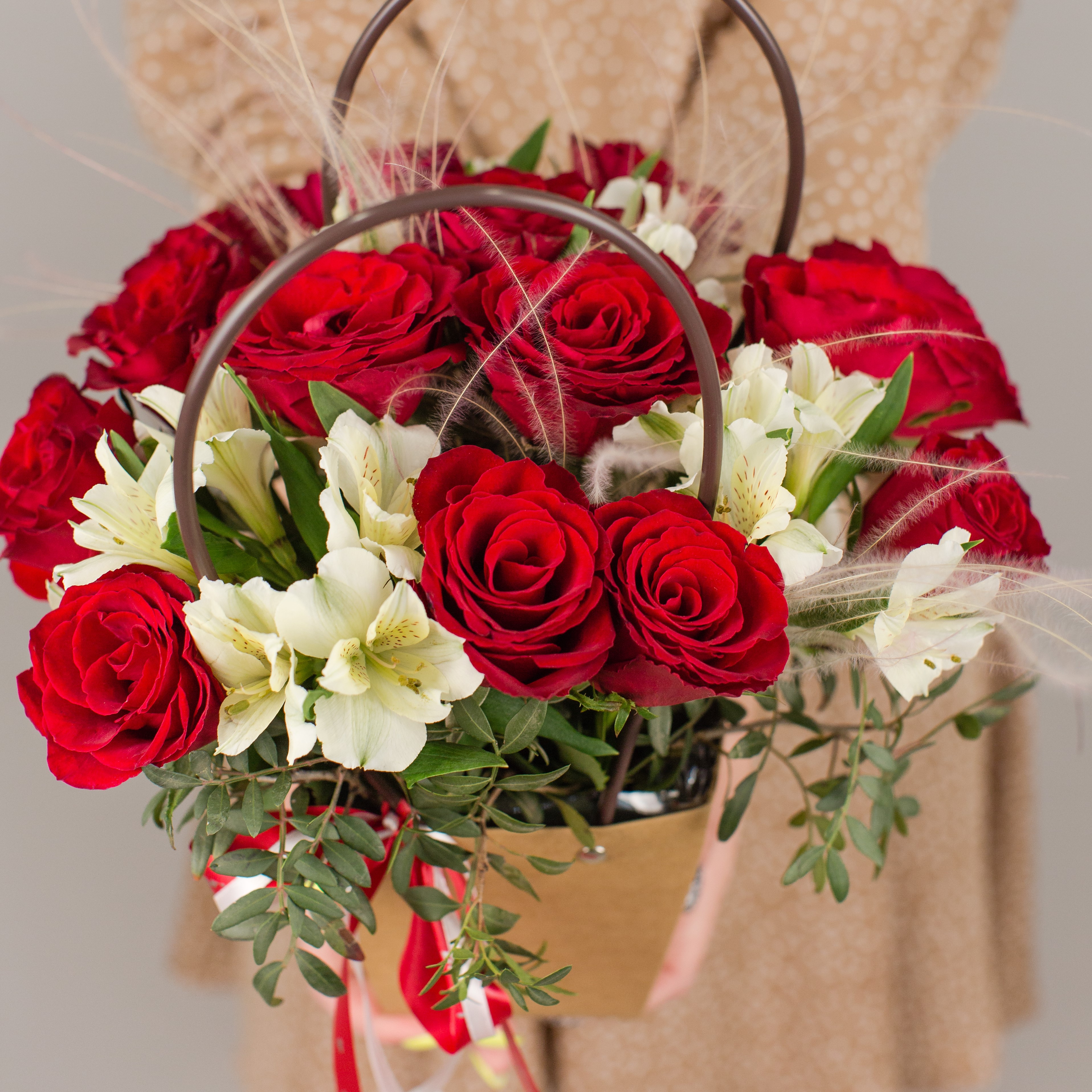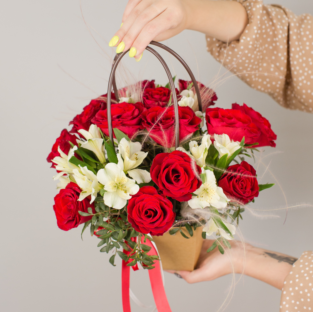 Сумочка с красными розами Кения и альстромерией арт. 50539