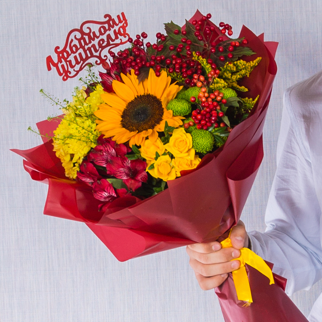 • Букет "Школьник" из кустовой хризантемы и гермини. арт. 6957 Букет "Школьник" из кустовой хризантемы и гермини. арт. 6957
