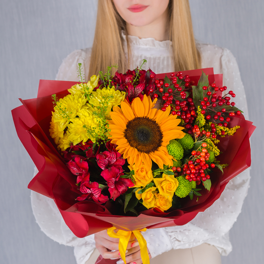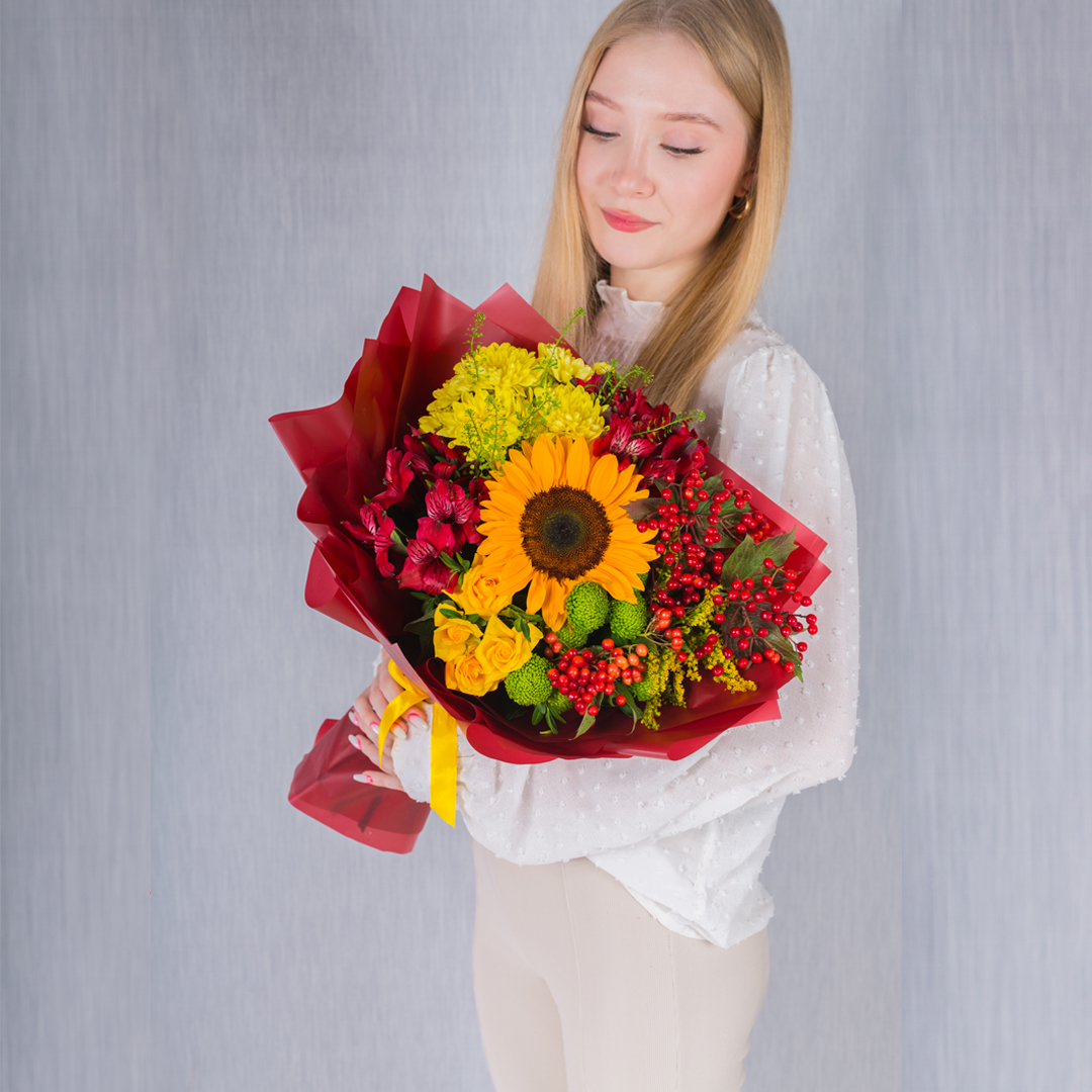 Букет из кустовой хризантемы и альстромерии. арт. 47544