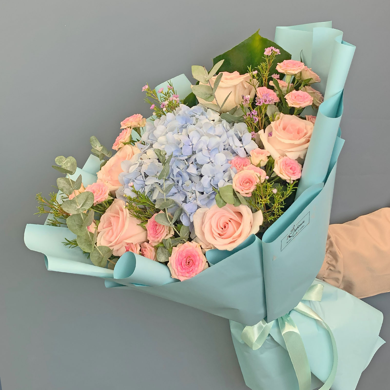 Школьный букет с гортензией и эустомой "Подружка" арт. 37962