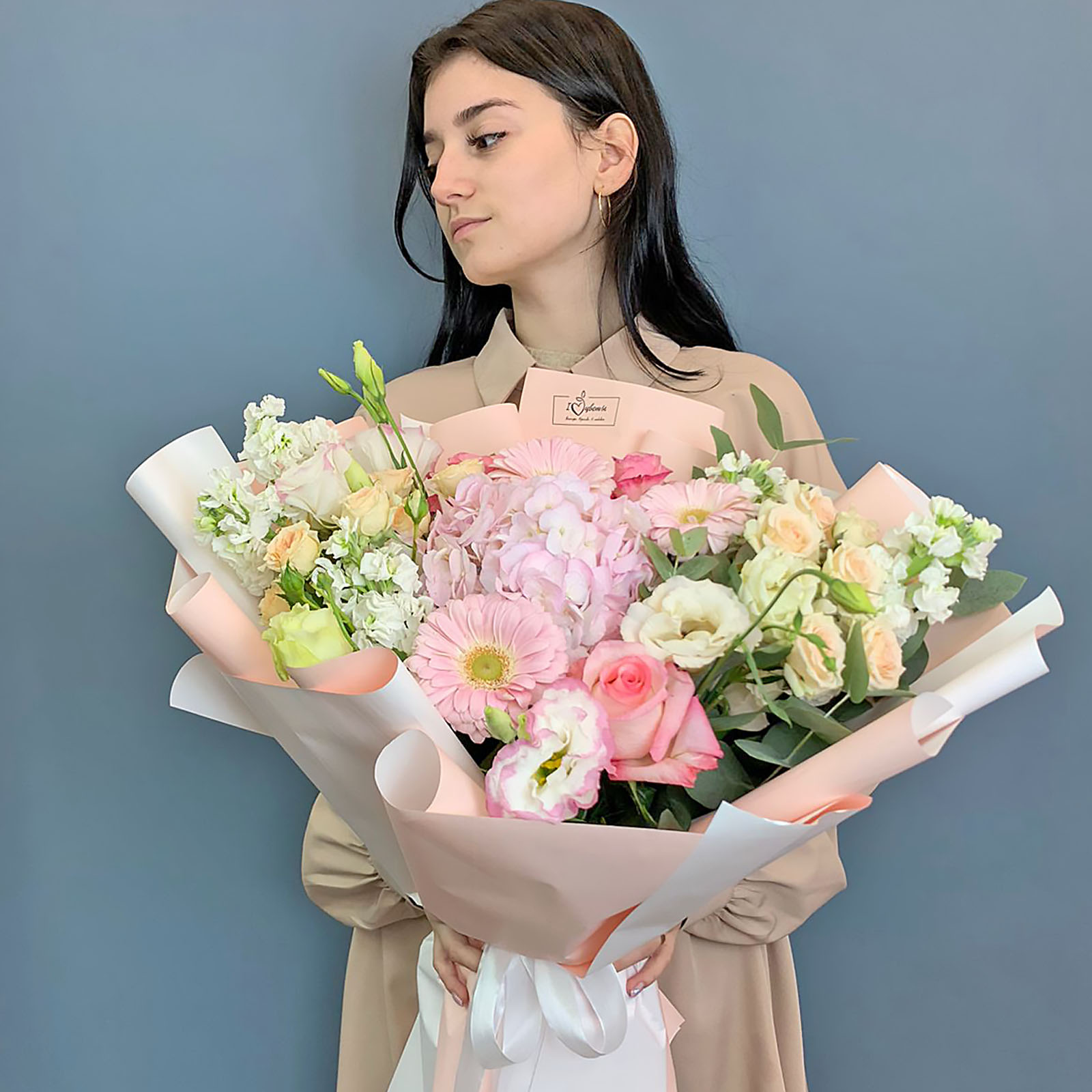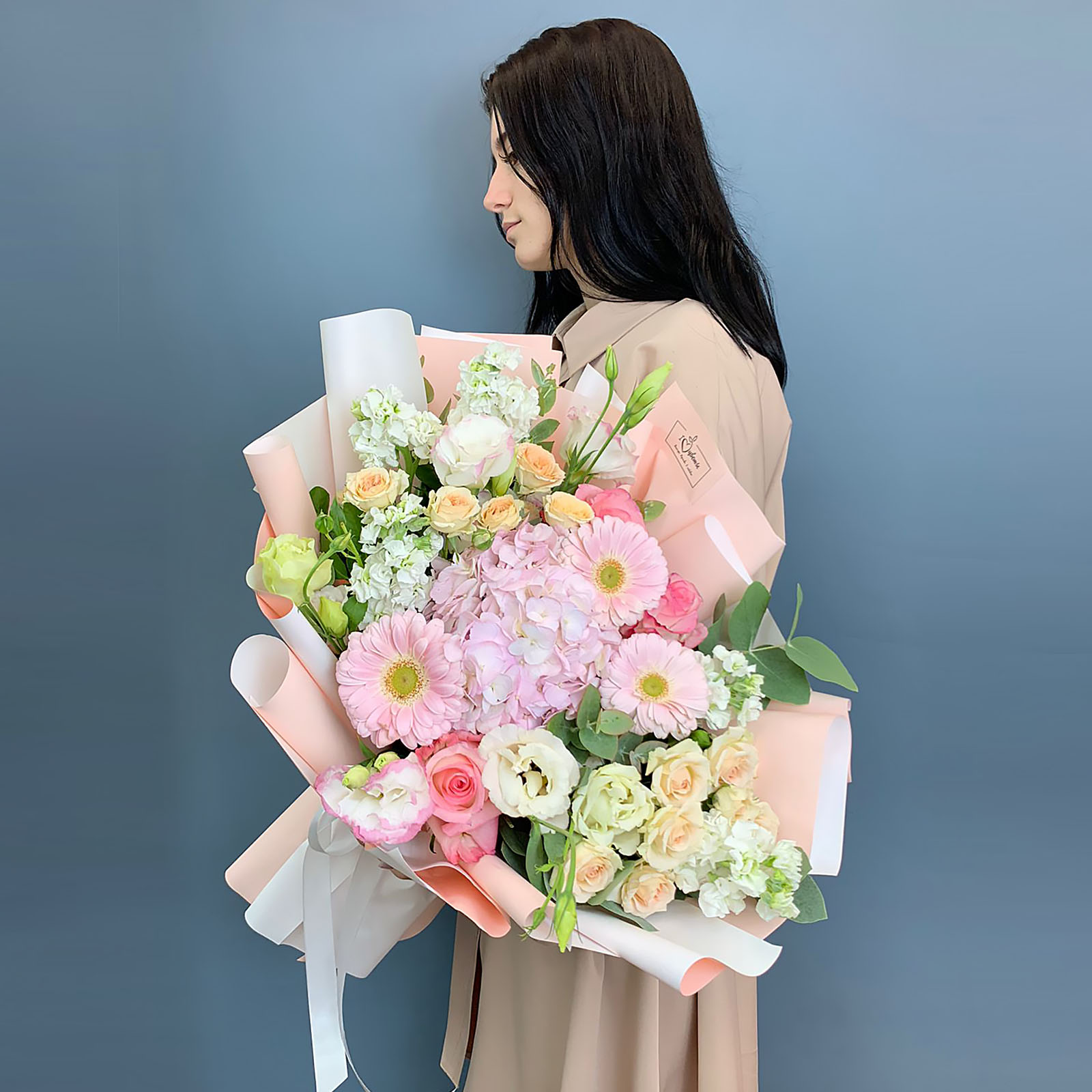 Такой большой букет легко представить в руках мамы, любимой, девушки, сестры или коллеги - он эффектно подсвечивает значимость момента и создаёт ощущение яркого события. Его выбирают для юбилея, важного праздника или просто тогда, когда хочется выразить свои чувства без слов. Цветы здесь собраны так, чтобы выглядеть нежно, но уверенно, сохраняя гармонию оттенков и фактур.